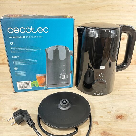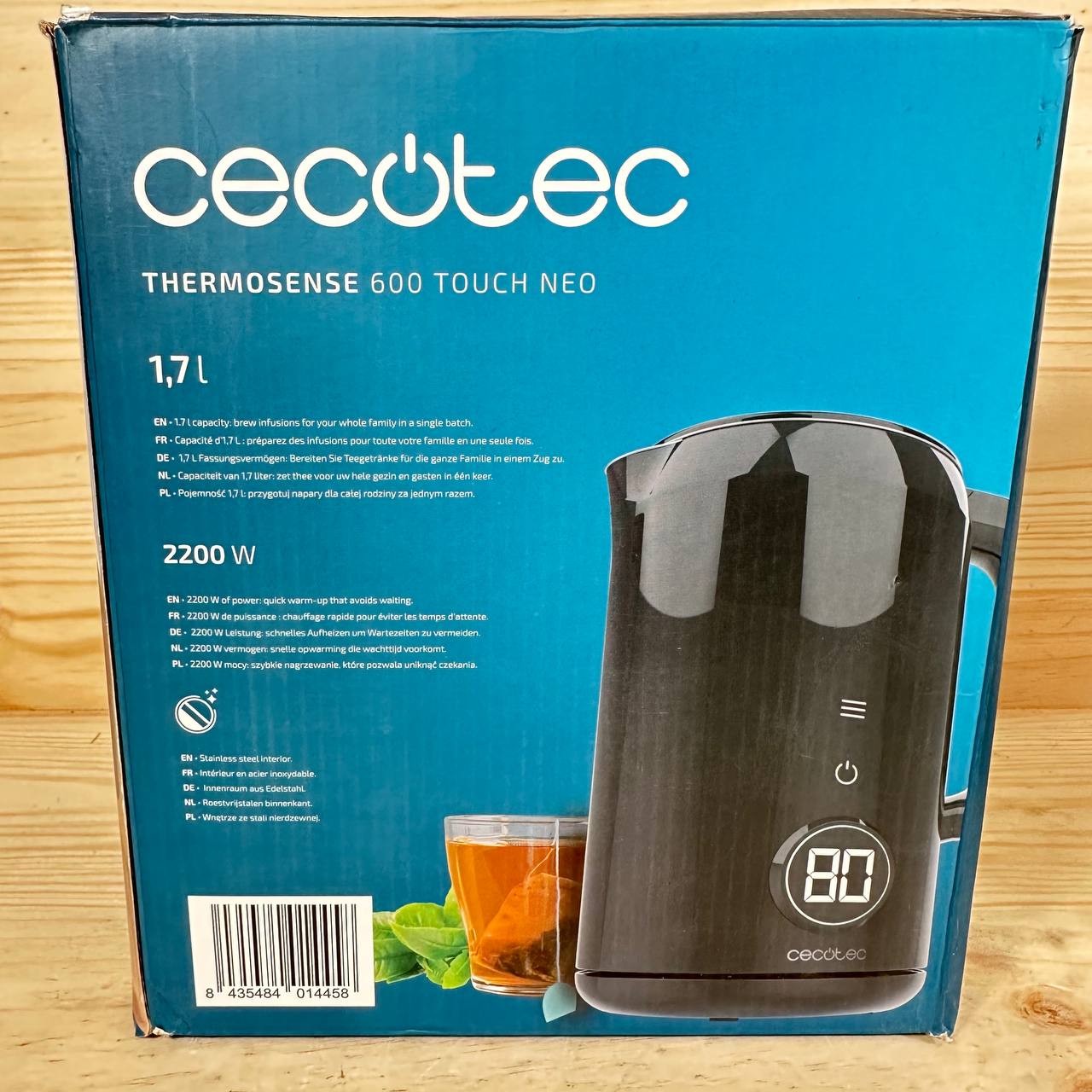 Hervidor de Agua Eléctrico Cecotec Thermosense 600 Touch Neo de 1,7 litros (como nuevo, pequeñas marcas de uso que no afectan funcionamiento). Potente con 2200W y fabricado con interior de acero inoxidable, cuenta con 7 niveles de temperatura ajustables.