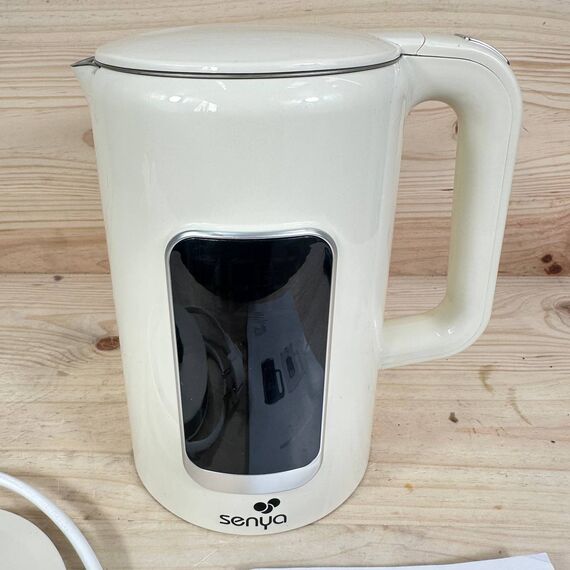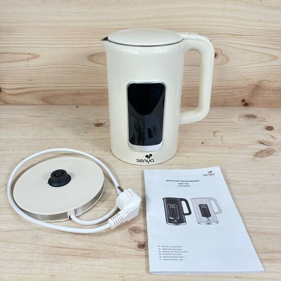 SENYA Bouilloire Electrique 1.7L (como nuevo, pequeño detalle: sin caja original, pequeñas marcas de uso). Cuenta con un gran pantalla digital y 5 programas de temperatura automática y ajustable, ideal para preparar infusiones a la perfección.