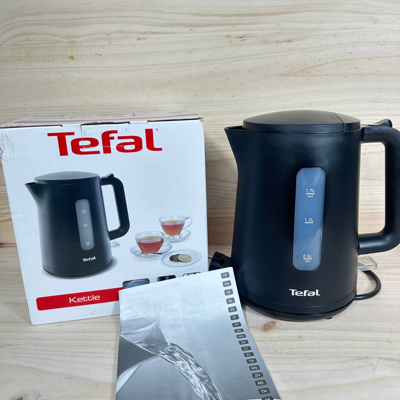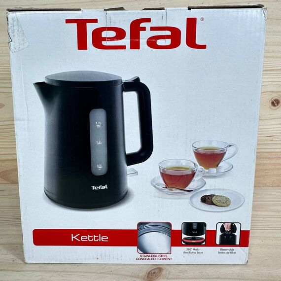 Hervidor Tefal Principio Select KO2008, 2400 W (como nuevo, sin defectos). Capacidad de 1,7 litros, diseño en negro mate, equipado con interruptor automático de marcha/paro y filtro anticalcáreo.