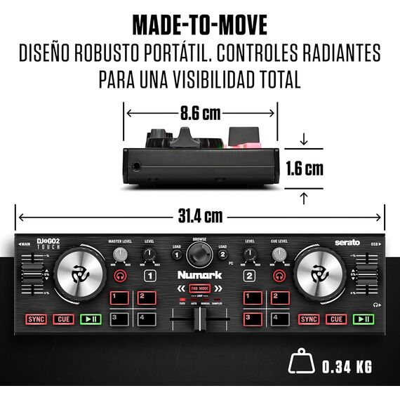 La Numark DJ2GO2 Touch es una de las controladoras DJ más populares del mundo gracias a su tamaño reducido y su potencia profesional.