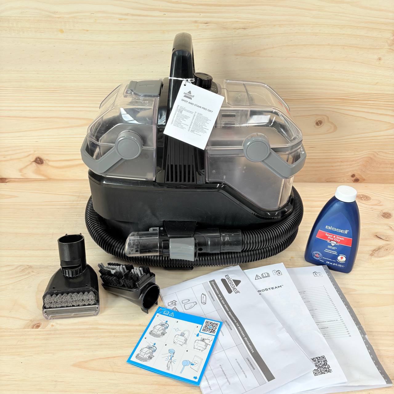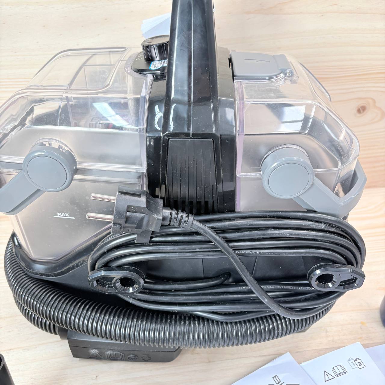 Aspiradora de Agua BISSELL SpotClean HydroSteam 3689N (buen estado, sin defectos). Equipado con un potente motor de 1000W, este limpiador combina la tecnología HydroSteam para una limpieza profunda de alfombras, tapicería, sofás y vehículos.