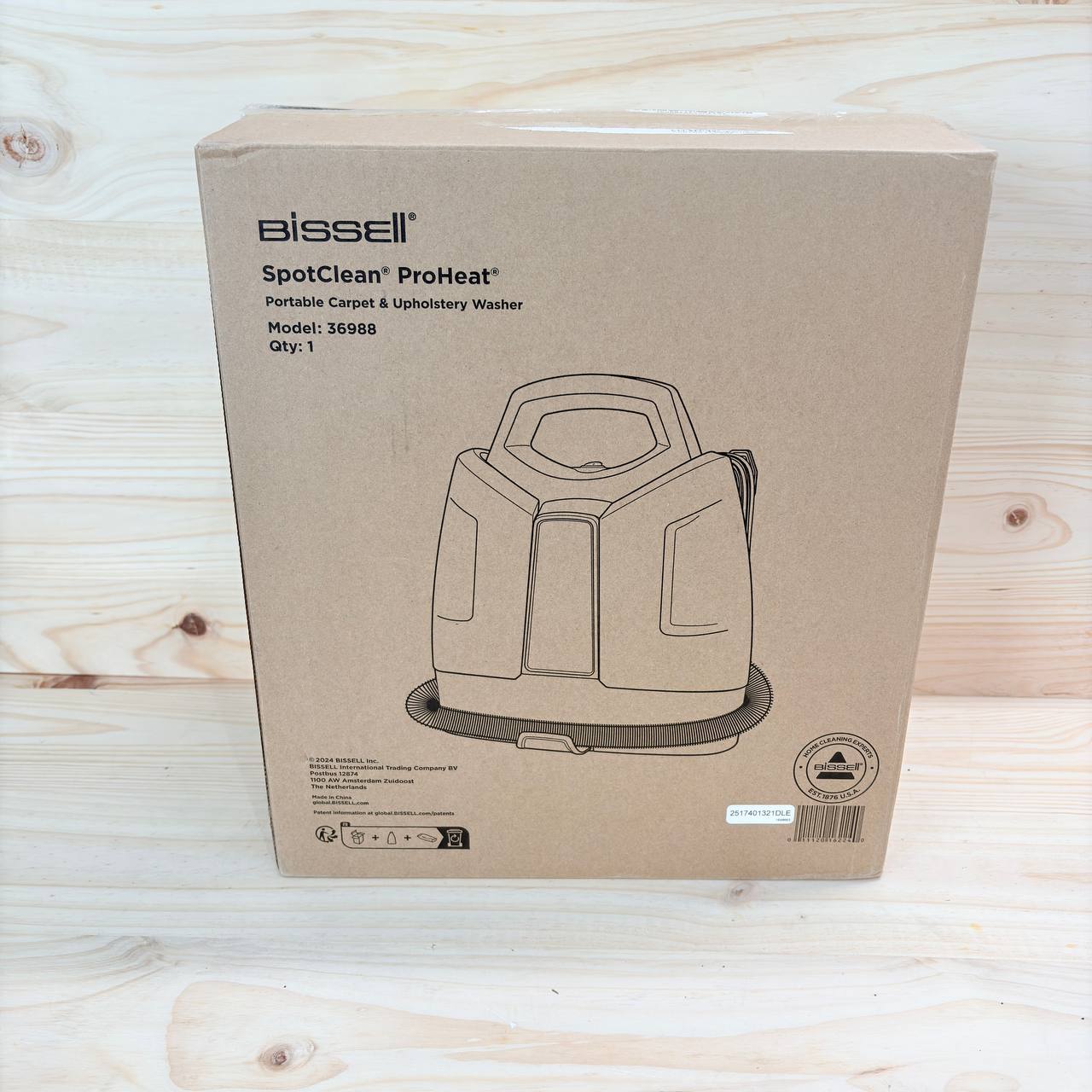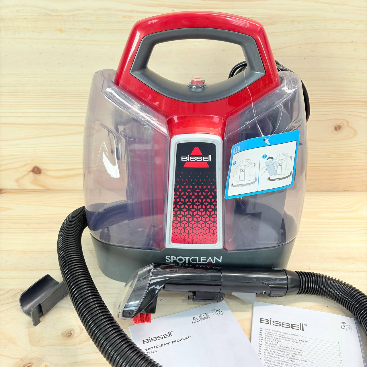 Aspiradora de agua Bissell SpotClean ProHeat 36988 (como nueva, sin defectos). Potente motor de 330W y tecnología HeatWave que mantiene el agua caliente para una limpieza eficaz de alfombras, tapicería, sofás y vehículos.