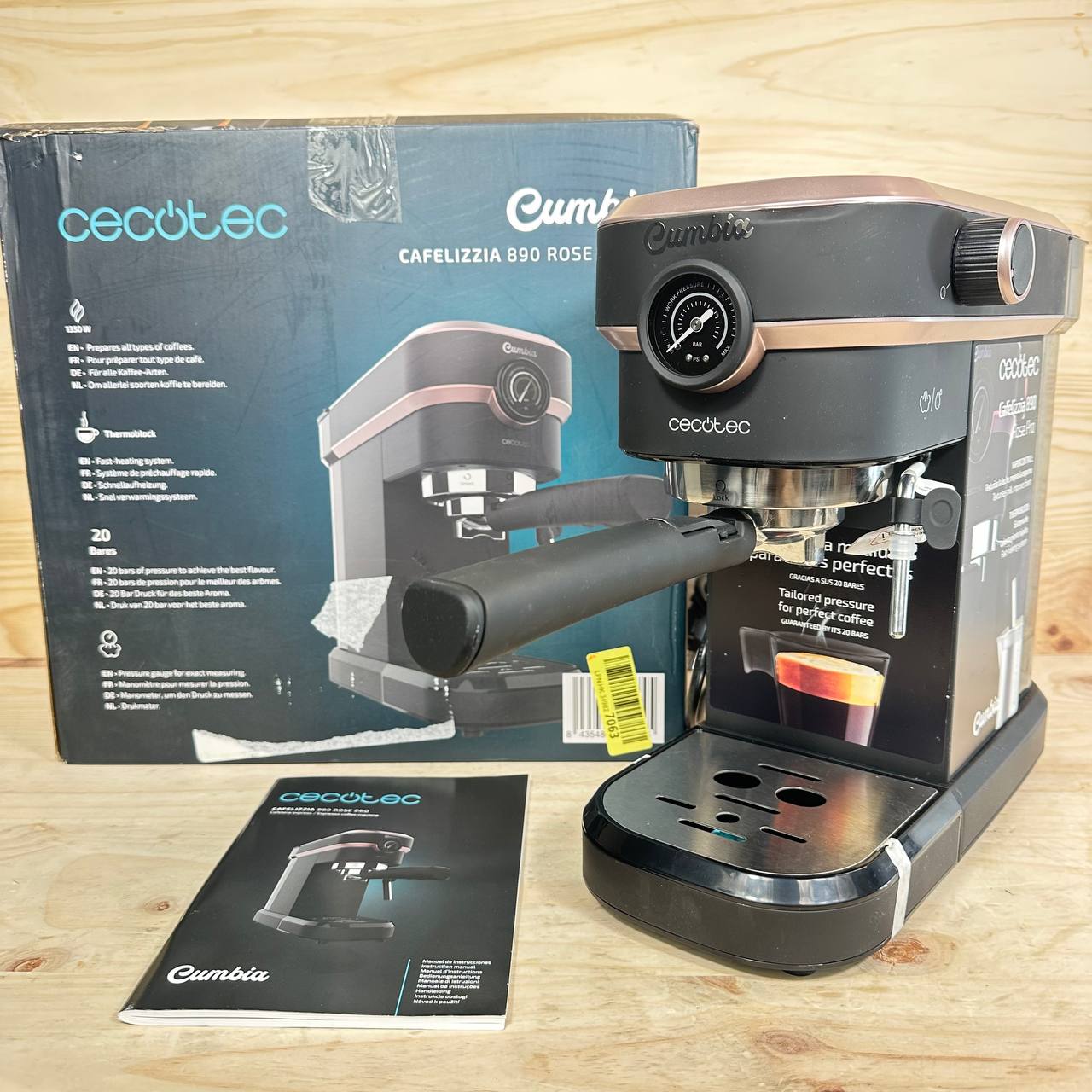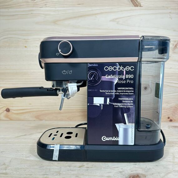 Cafetera Express Cecotec Cafelizzia 890 Rose Pro (buen estado, pequeño detalle: la tapa del depósito de agua está rota que no afecta su funcionamiento). Potente motor de 1350 W con sistema Thermoblock y 20 bares de presión para preparar espressos y cappuccinos perfectos. Capacidad del depósito de agua de 1,2 L.