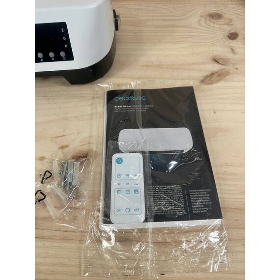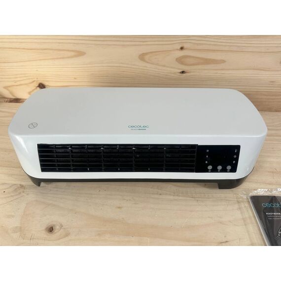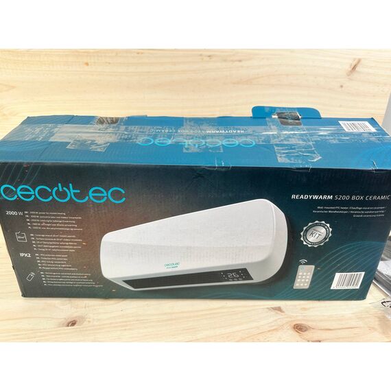 Calefactor Eléctrico Bajo Consumo Cerámico Cecotec Ready Warm 5200 Box Ceramic (como nuevo, sin defectos). Potencia de 2000 W, pantalla digital, clasificación IPX2, temporizador y 3 modos de funcionamiento, además de protección contra sobrecalentamiento y mando a distancia.