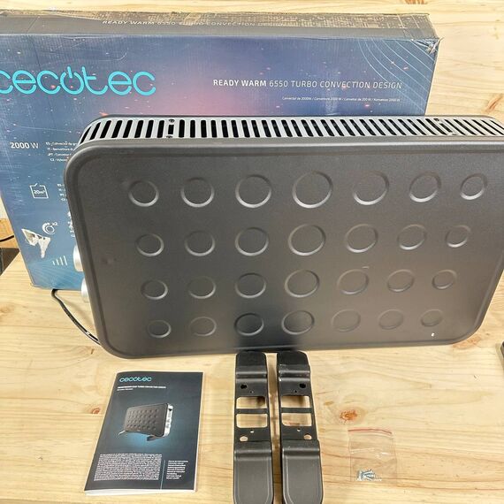 Radiador Eléctrico Bajo Consumo Cecotec Ready Warm 6550 Turbo Design de 2000 W (como nuevo, pequeño golpe que no afecta funcionamiento). Termostato regulable y 4 modos de calefacción, ideal para espacios de hasta 20 m².