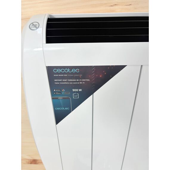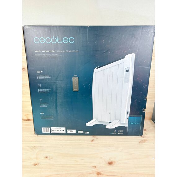 Radiador Eléctrico Cecotec Bajo Consumo Ready Warm 1200 Thermal Connected (como nuevo, sin defectos). Con 6 elementos y una potencia de 900 W, este radiador se puede instalar en pared o utilizar como modelo de pie. Incluye un temporizador, mando a distancia y pantalla LCD para un control fácil.
