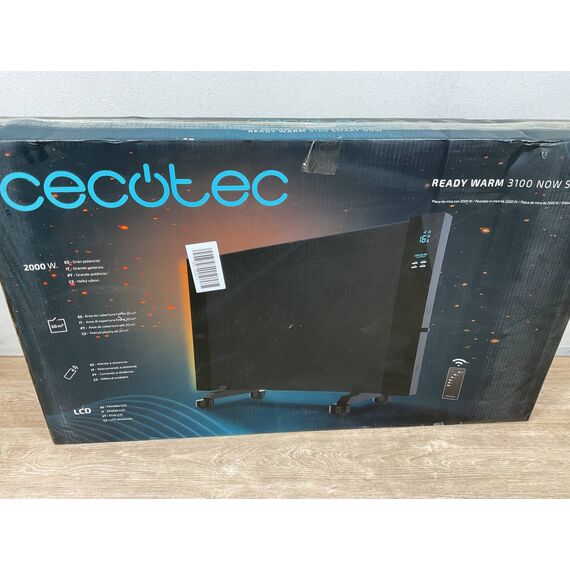 Radiador Eléctrico Bajo Consumo Cecotec Ready Warm 3100 Smart Now de 2000W (como nuevo, pequeño detalle: le faltan patas y un pequeño golpe frontal que no afecta funcionamiento). Cuenta con pantalla LCD, temporizador regulable y 2 modos de calefacción, ideal para espacios de hasta 15 m².