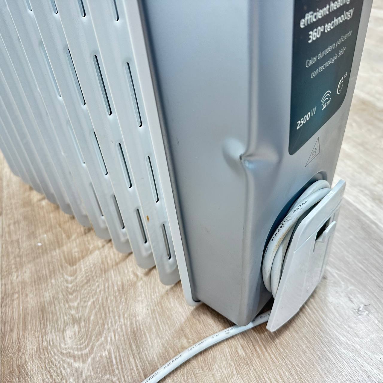 Radiador Eléctrico de Aceite Cecotec ReadyWarm 11000 Space 360 (como nuevo, pequeños golpes y arañazos que no afectan funcionamiento). Cuenta con 11 módulos y una potencia de 2500 W, con tres niveles de calefacción. Diseñado para calentar espacios de hasta 28 m², incluye un sistema de recogecables y tecnología 360 para una distribución uniforme del calor.