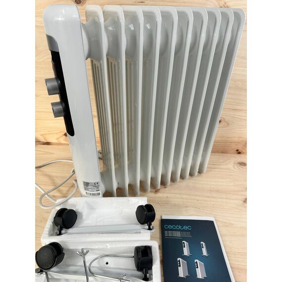 Radiador Eléctrico de Aceite Cecotec ReadyWarm 11050 Space White (como nuevo, pequeño detalle: pequeñas marcas de uso). Potencia de 2500W con 11 módulos, 3 niveles de potencia y sistema de seguridad. Ideal para espacios de hasta 25m².