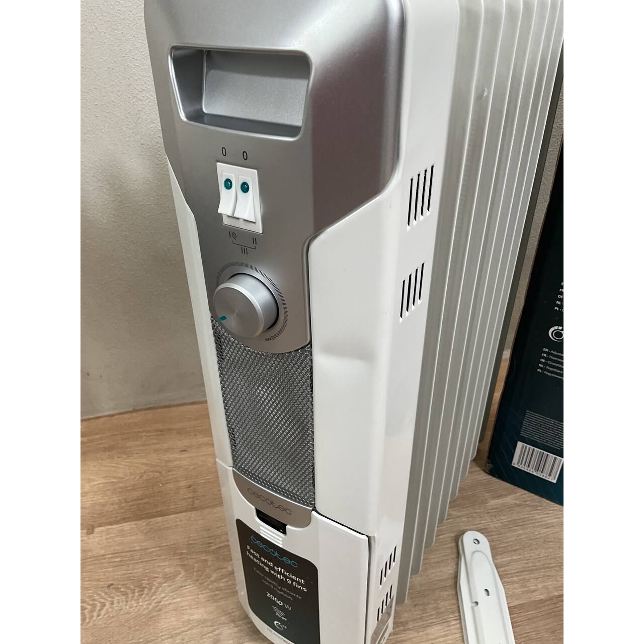 Radiador Eléctrico de Aceite Cecotec ReadyWarm 9000 Space (como nuevo, pequeños arañazos que no afectan funcionamiento). Cuenta con 9 módulos y una potencia de 2000 W, ideal para calentar espacios de hasta 20 m². Bajo consumo y 3 niveles de temperatura.
