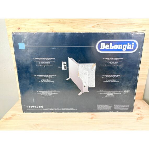 Calefactor eléctrico De'Longhi HSX2320F de 2000W (como nuevo, sin defectos). Diseño elegante en color blanco, cuenta con ajustes de termostato para un control preciso de la temperatura y una potencia de calefacción eficiente.