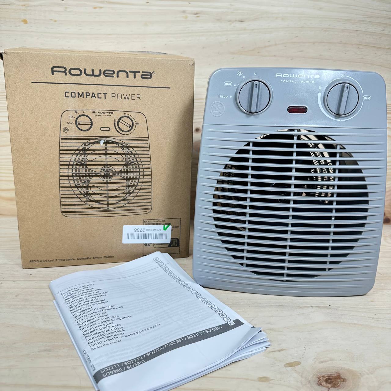 Mini radiador Rowenta Compact Power SO2212F0, nuevo, sin defectos. Potencia de hasta 2000W con modo eco, temperatura y potencia ajustables, y diseño compacto que se adapta a cualquier espacio.