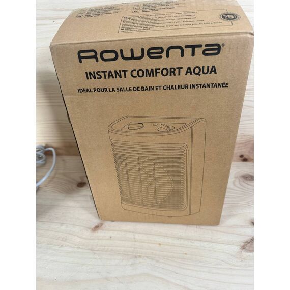 Calefactor Rowenta Instant Comfort Aqua SO6510, como nuevo, sin defectos. Potencia de hasta 2400W, ideal para baños, con un nivel de ruido de solo 45 dBA, lo que lo convierte en una opción silenciosa. Cuenta con 2 velocidades, termostato mecánico y función anti-heladas, además de un ventilador que permite aire frío.