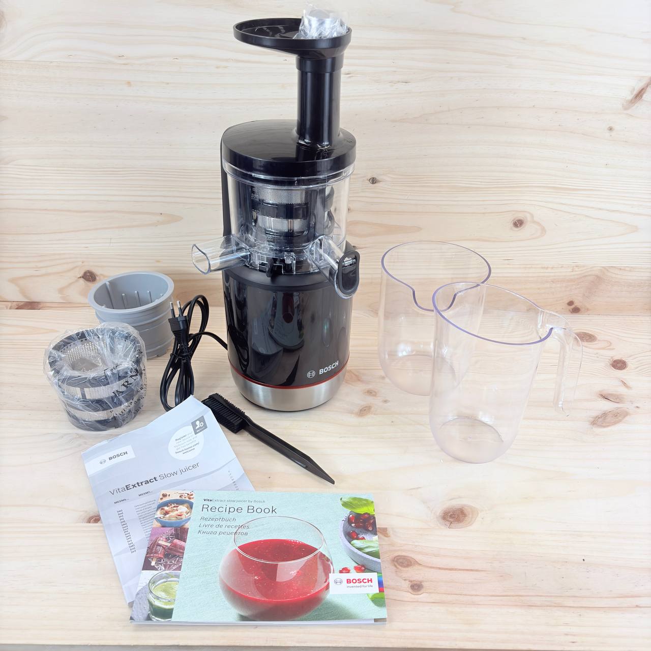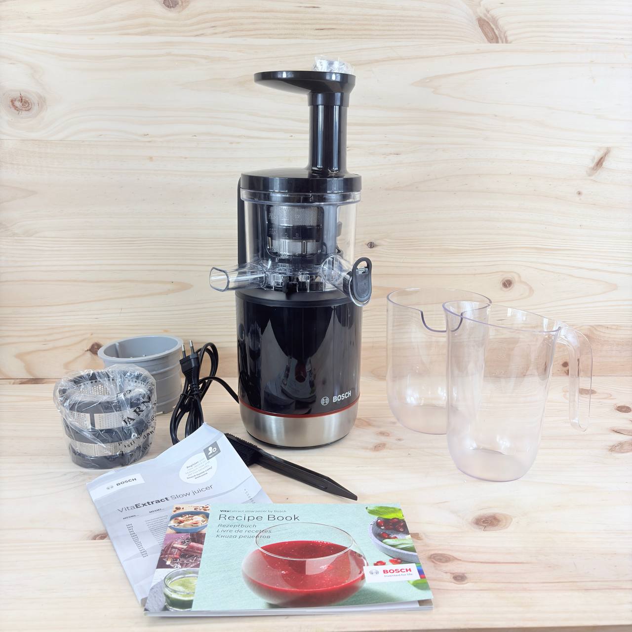 Extractor de jugos Bosch MESM731M VitaExtract (nuevo, sin defectos). Equipado con tecnología de prensado lento y sistema MixControl que permite regular la pulpa según tus preferencias.