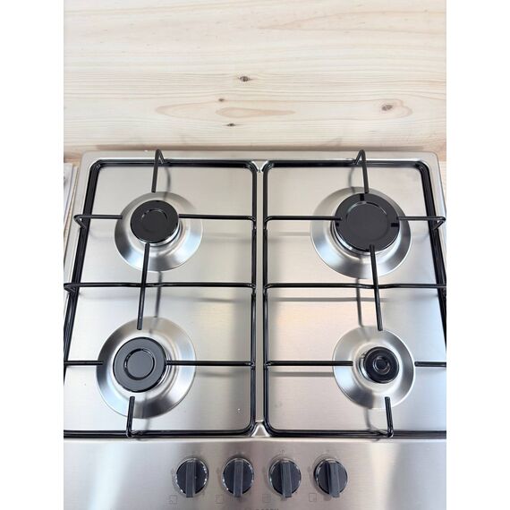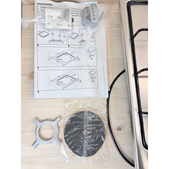 Placa de gas Bosch PGP6B5K85 de 4 fuegos, 60 cm (como nuevo, sin defectos). Diseño elegante en acero inoxidable, cuenta con encendido piezoeléctrico y parrillas de hierro fundido para mayor durabilidad.