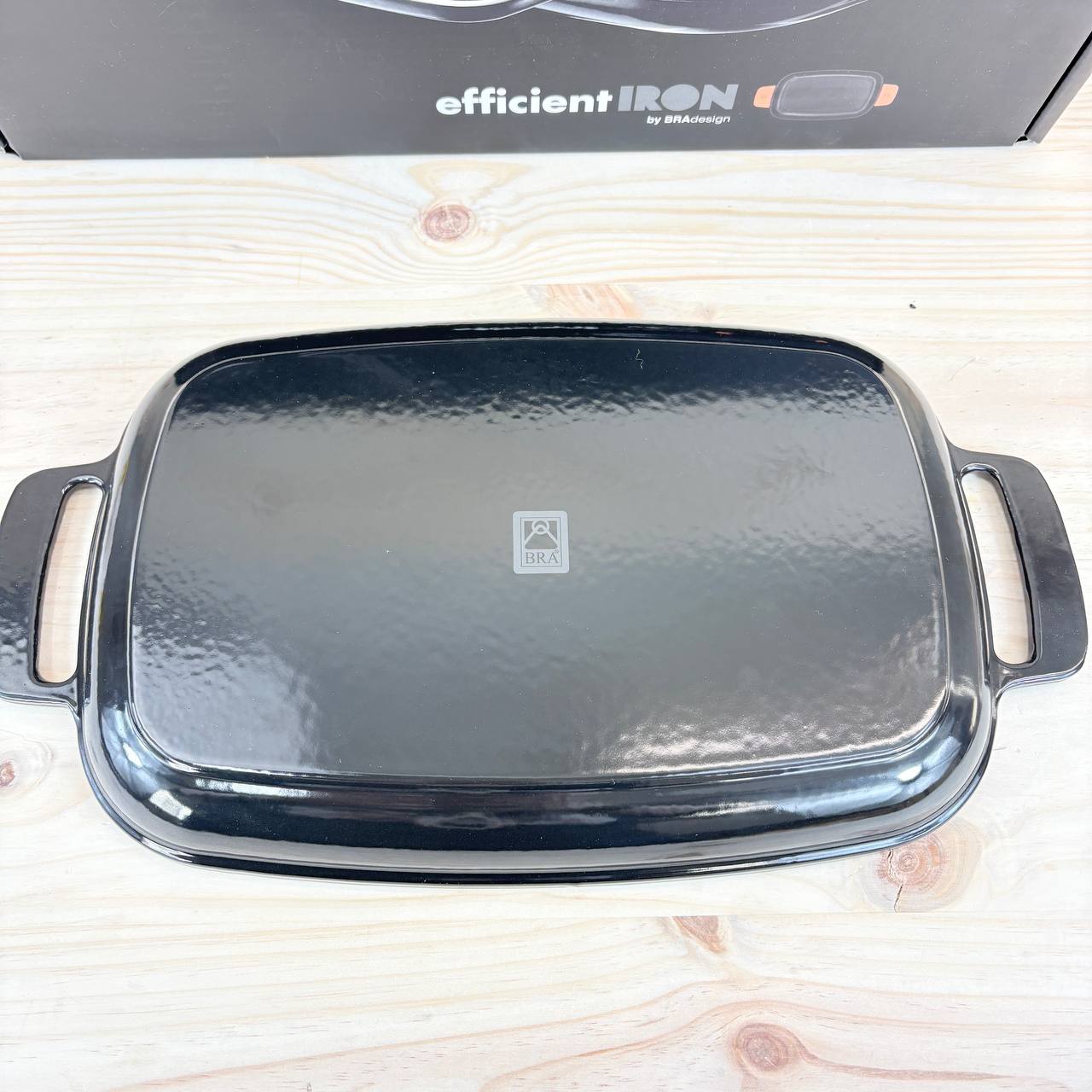 Parrilla Rectangular Lisa BRA Efficient Iron de 35 cm (nuevo, pequeño detalle: faltan asas de silicona). Fabricada en hierro fundido, ideal para una cocción uniforme y eficiente.