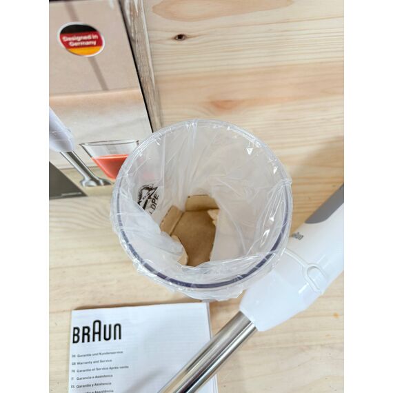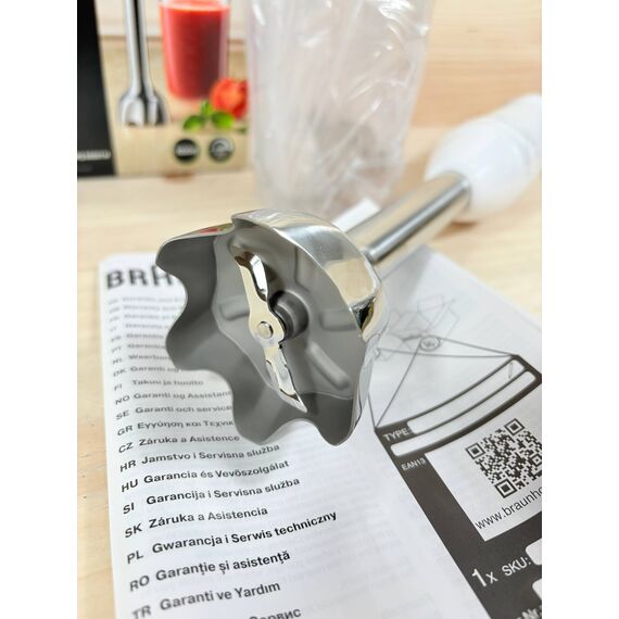 Batidora de Mano Braun MultiQuick 5 MQ 50001 M (nuevo, sin defectos). Potente motor de 1000W con tecnología PowerBell Plus y 21 velocidades más función turbo. Incluye un vaso de 600ml y un sistema Easy Click Plus para intercambiar accesorios fácilmente.