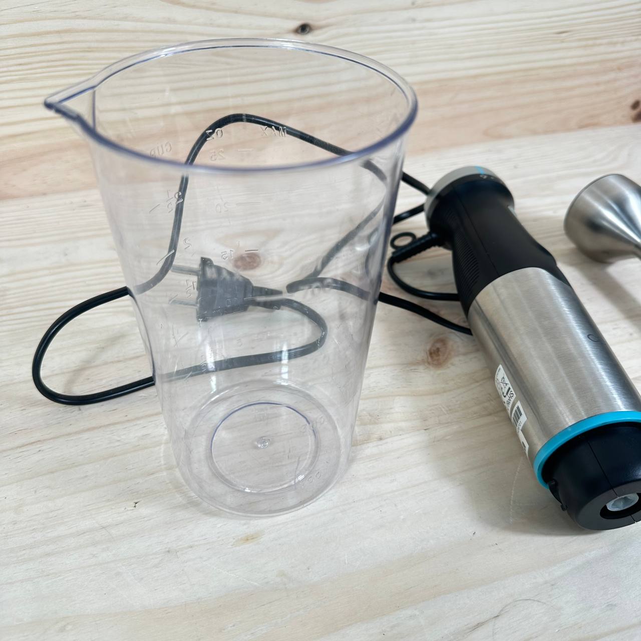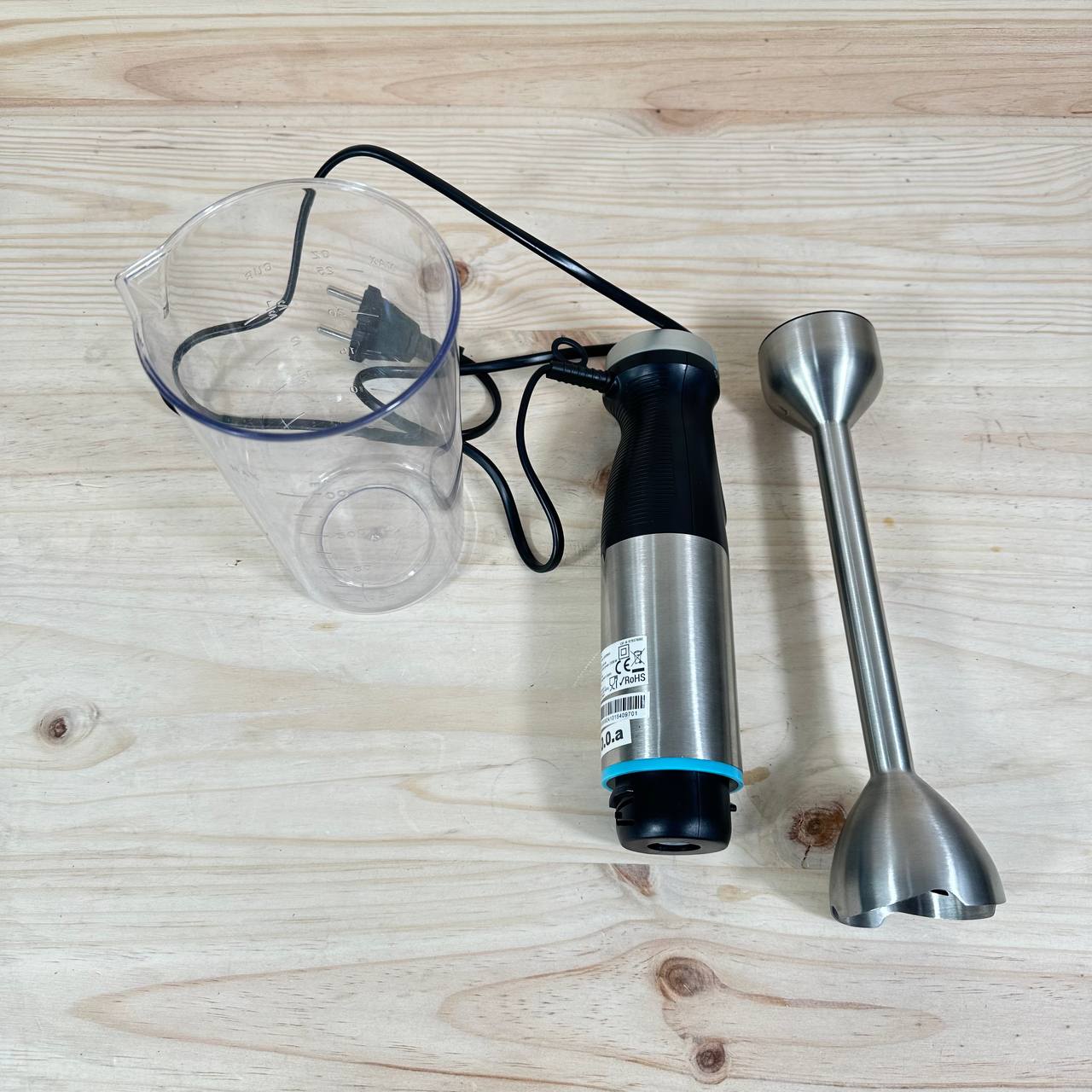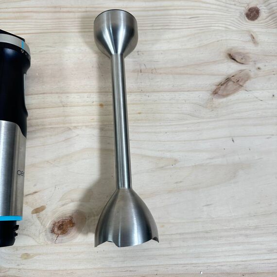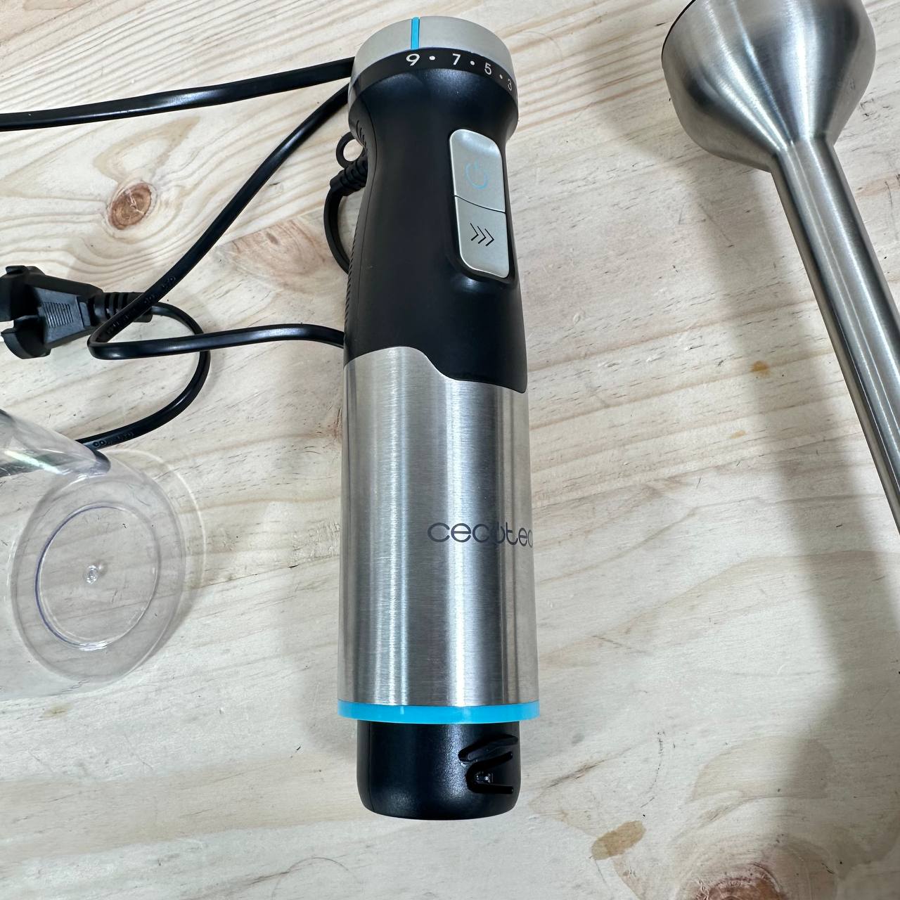 Batidora de Mano Cecotec Power Pulsar 2300MAX de 2300W (buen estado, pequeño detalle: falta caja original). Equipado con cuchillas de 4 hojas de acero inoxidable, pie XL y campana antisplash para un uso más limpio. Incluye vaso de 700ml sin tapa.