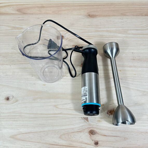 Esta batidora de mano ofrece una potente mezcla y triturado, perfecta para preparar batidos, sopas y salsas de manera rápida y eficiente. Su diseño ergonómico y ligero permite un manejo cómodo y su campana evita salpicaduras, manteniendo la cocina limpia.