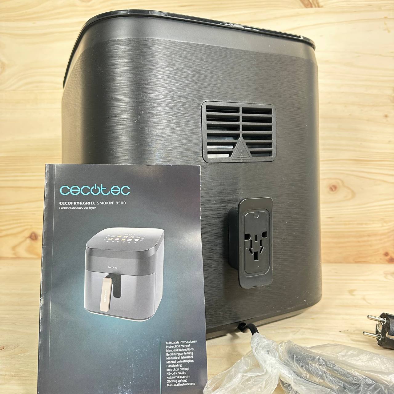 Freidora de Aire sin Aceite Cecotec Cecofry&Grill Smokin' 8500, nuevo, sin defectos. Capacidad de 8,5L, 2200W de potencia, con temperatura regulable de 40 a 200°C y 10 menús preprogramados para una cocción perfecta.