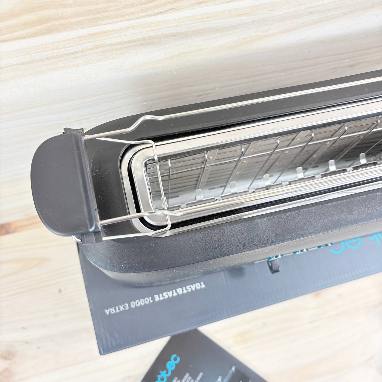 Tostadora Vertical Cecotec Toast&Taste 10000 Extra de 980 W (como nuevo, pequeño detalle: leves marcas de uso). Cuenta con una ranura larga extraancha y 3 funciones preconfiguradas para adaptarse a tus necesidades. Diseño en plástico con acabados en acero inoxidable, que aporta un toque moderno a tu cocina.