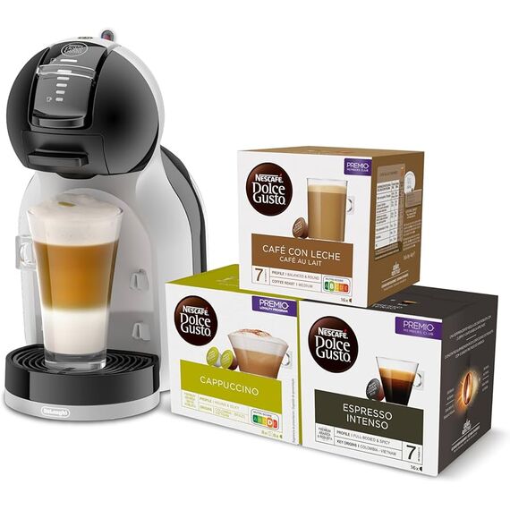 De'Longhi Mini Me Máquina de Café de Cápsulas Dolce Gusto para Café Espresso con 3 packs de café, EDG155.BG, 0,8 L, Color Negro, Gris