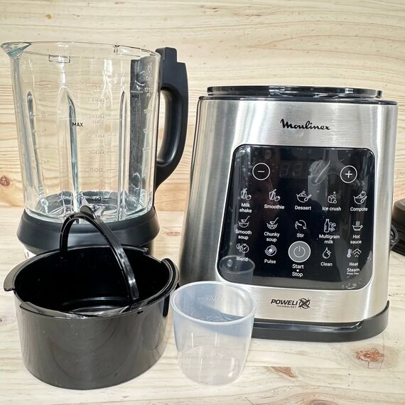 Batidora de vaso Moulinex PerfectMix Cook LM83SD de 1400W (nuevo, sin defectos). Cuenta con 10 programas automáticos y cuchillas extraíbles Powelix, ideal para una capacidad de 2L y alto rendimiento.