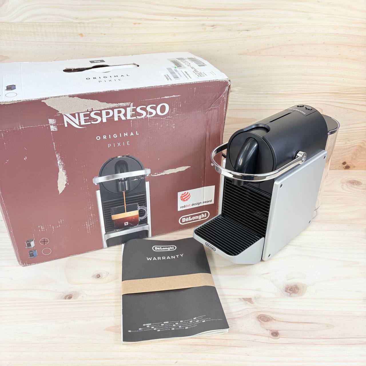 Nespresso De'Longhi Pixie EN127.S, máquina de café en cápsulas, como nueva, sin defectos. Potente sistema de presión de 19 bares, ideal para preparar espresso y café lungo. Diseño compacto en color silver y modo ECO para un menor consumo energético.