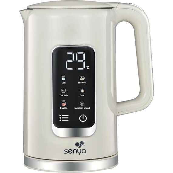 SENYA Hervidor Eléctrico 1.7L | Gran Pantalla Digital | 5 Programas de Temperatura Automática y Ajustable | Función Mantener Caliente | Base 360° y Asa Ergonómica | Color Crema