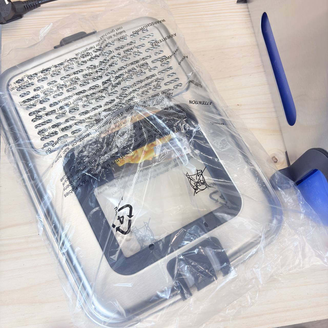 Freidora Tefal Oleoclean Pro INOX & Design FR8040 de 2300 W (nuevo, nunca usado, pequeño detalle: pata rota del lado izquierdo). Capacidad de 3.5 litros en acero inoxidable, ideal para una cocina moderna.