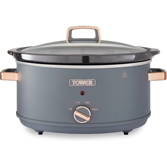 Tower T16043GRY Olla de Cocción Lenta de 6.5 Litros, Modelo Cavaletto – Olla Lenta con 3 Ajustes de Temperatura, Asas de Tacto Frío - Gris y Rosa Oro