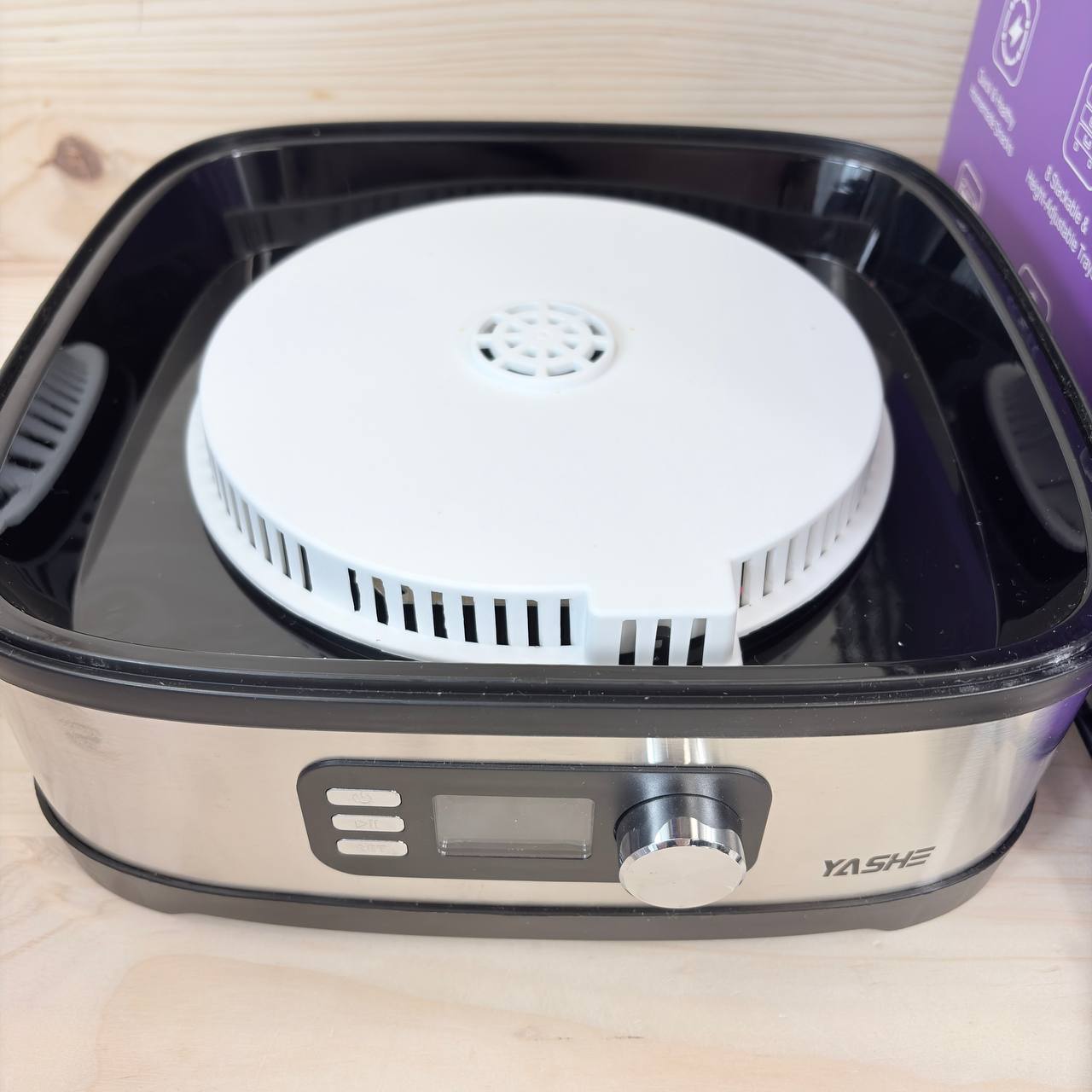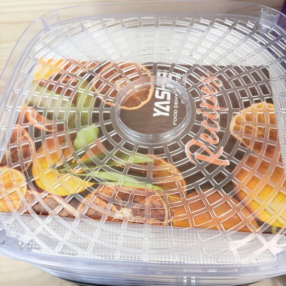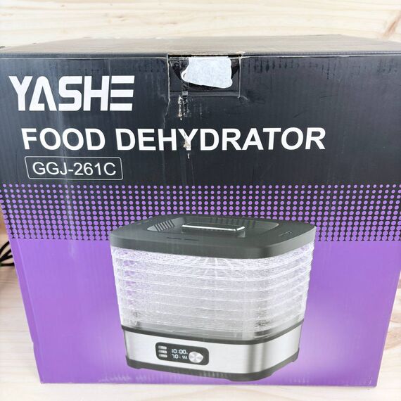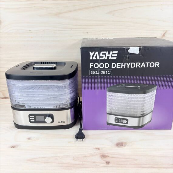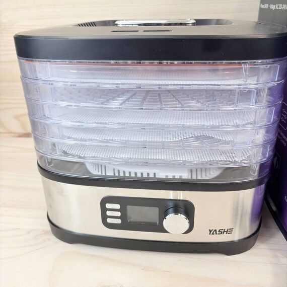 Deshidratador de Alimentos YASHE de 8 bandejas (como nuevo, pequeño detalle: dos bandejas con roturas). Permite ajustar tiempo y temperatura hasta 72 horas, ideal para deshidratar frutas, verduras y carne.