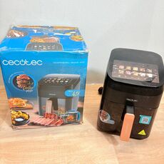 "Freidora de aire Cecofry&Grill Smokin' 8500 de 2200W. Buen estado. con marcas de uso. Capacidad de 8. 5L. temperatura ajustable de 40-200°C y 10 menús preestablecidos. "