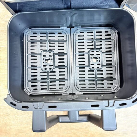 Freidora de Aire Cecotec Cecofry Dual 9000 de 2850W (como nuevo, sin defectos). Capacidad de 9L divisible en 2 compartimentos, ideal para preparar diferentes platos simultáneamente. Cuenta con un panel táctil digital, temperatura dual y regulable, y 6 modos de cocción.