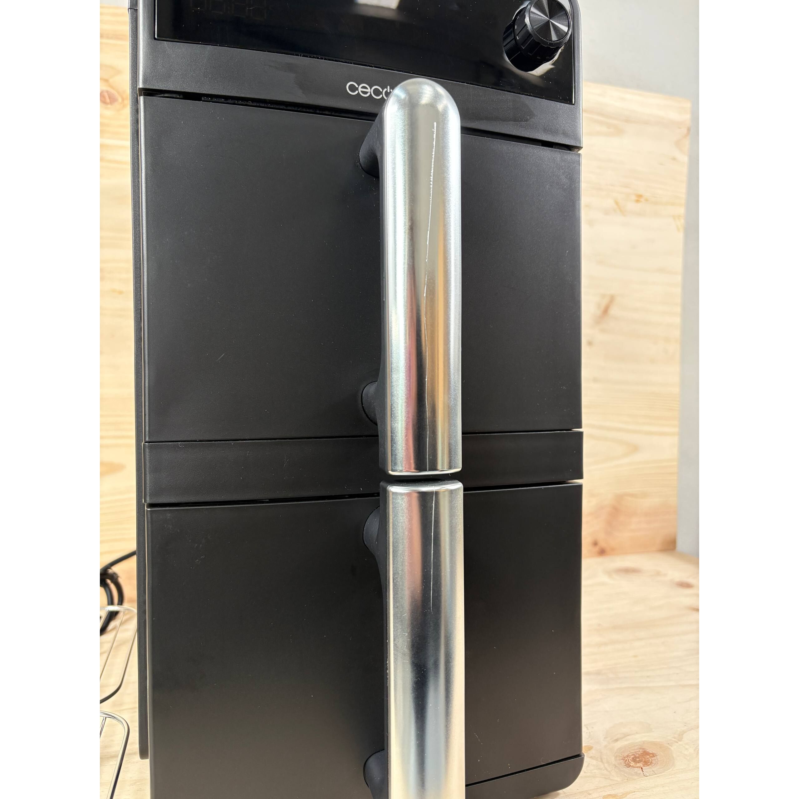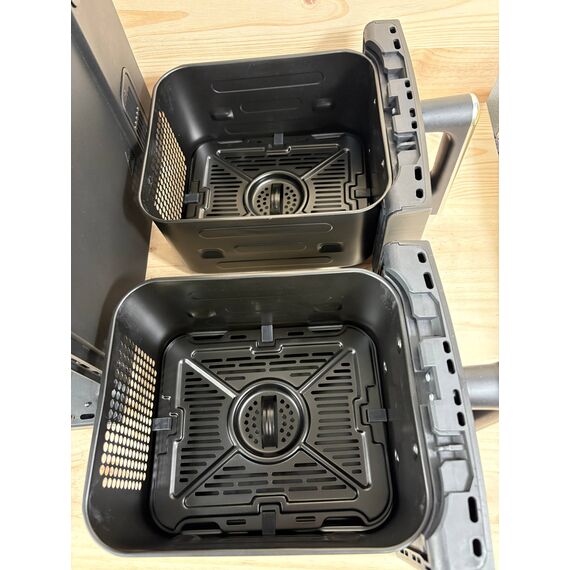 Freidora de Aire Cecotec Cecofry DuoLevel 10000 de 2400W (nuevo, pequeño rasguño en la manija, por lo demás nuevo). Capacidad total de 10L con cubetas superpuestas de 5L cada una, ideal para preparar varias recetas a la vez. Cuenta con un control táctil intuitivo y 6 programas preconfigurados para una cocción rápida y saludable.