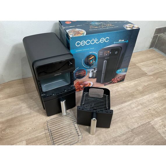 Freidora de Aire Cecotec Cecofry DuoLevel 10000 de 2400W (como nueva, pequeño detalle: pequeñas marcas de uso). Capacidad de 10L con cubetas superpuestas de 5L, ideal para preparar comidas para toda la familia de forma rápida y saludable.
