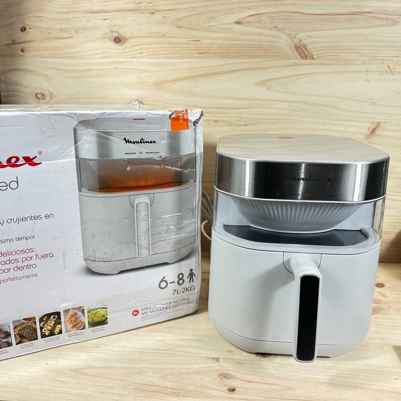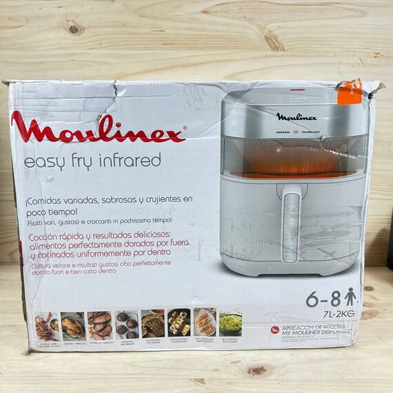Freidora de Aire Easy Fry Infrared 7.5L, modelo EZ831GF0, en estado como nuevo y sin defectos. Cuenta con doble calentador y tecnología de infrarrojos para conseguir resultados crujientes en tus platos favoritos, además de una gran capacidad de 7.5 litros.