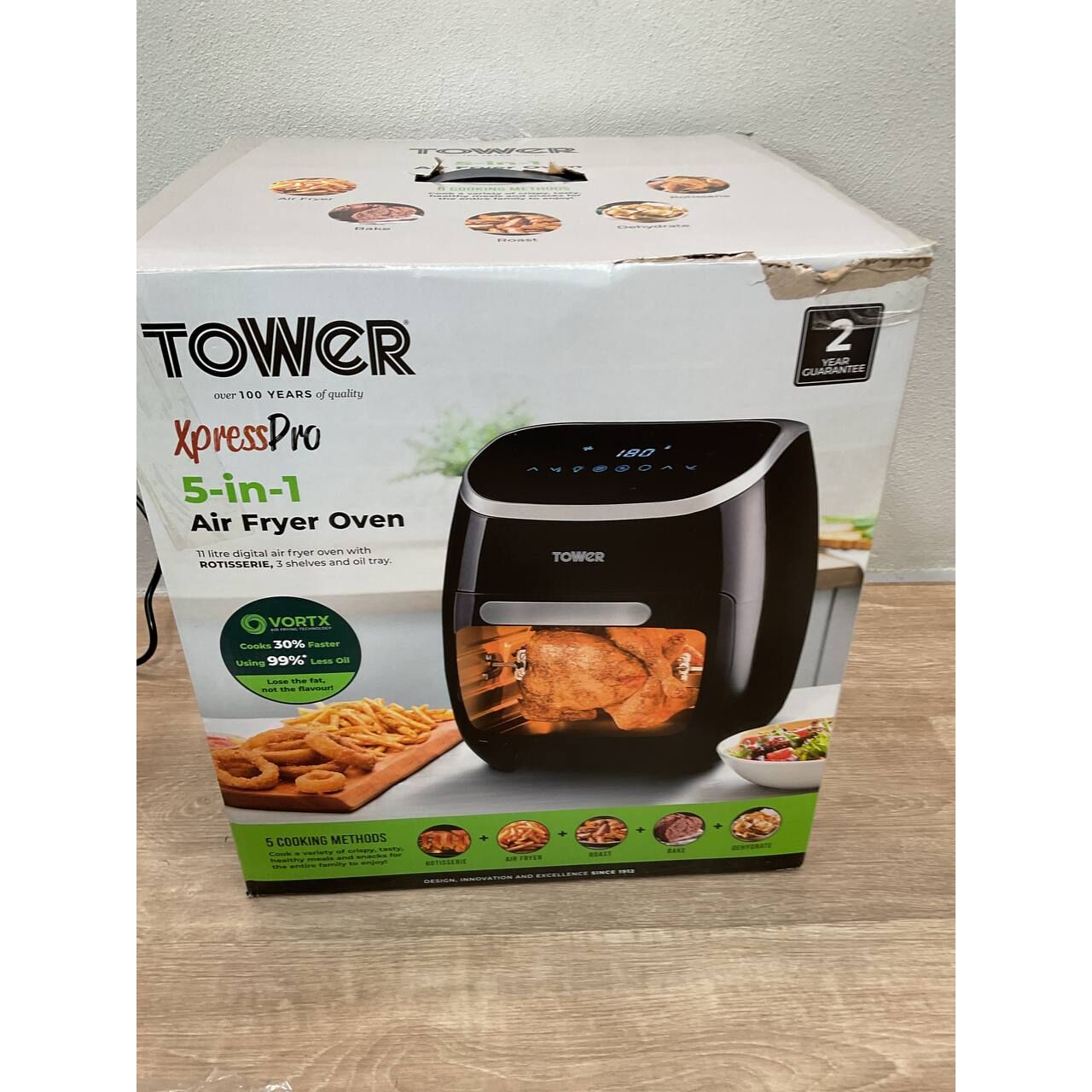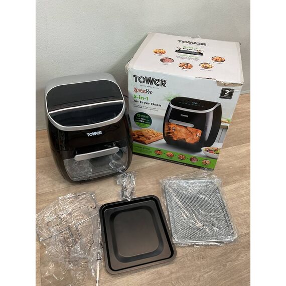 Freidora de Aire Tower T17039 Xpress 5 en 1 (como nuevo, sin defectos). Potente modelo de 2000W con capacidad de 11L, diseñado para ofrecer una cocción rápida y saludable sin aceite, gracias a su avanzada tecnología de circulación de aire.