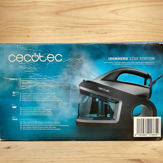 Centro de Planchado Horizontal Cecotec IronHero 3200 Station (como nuevo, sin defectos). Potente con 3200W y 8 bares de presión, ofrece vapor continuo de 150g/min y golpe de vapor de 420g/min. Suela Turbo Slide para un deslizamiento óptimo y fácil limpieza con Cyclo Clean y filtro antical.