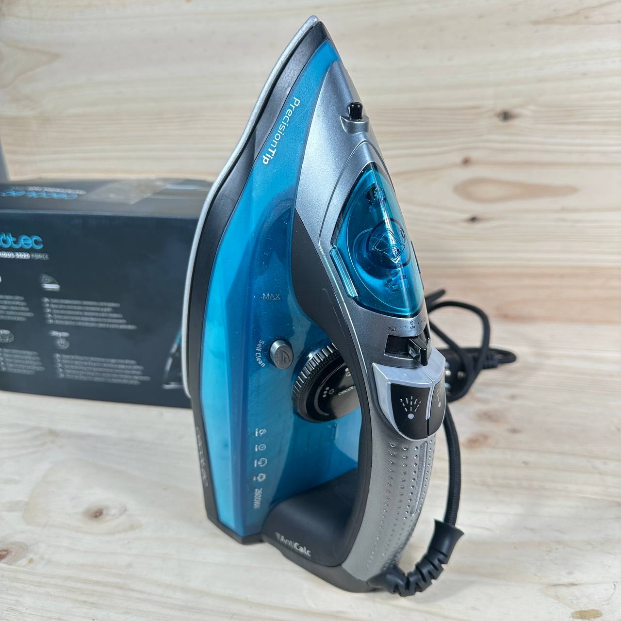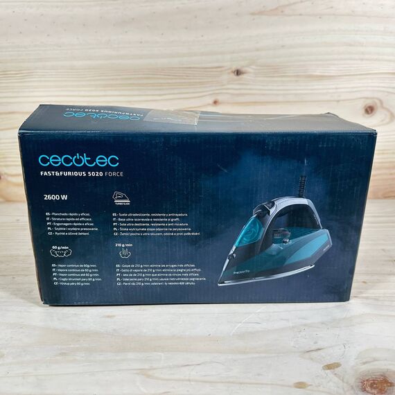 Plancha de Ropa de Vapor Cecotec Fast&Furious 5020 Force de 2600 W en buen estado y sin defectos. Cuenta con una suela ultradeslizante y antirrayadura, además de ofrecer un vapor continuo de 60 g/m y un golpe de vapor de 210 g/min. Incluye un sistema antigoteo y una punta de precisión para un planchado más eficaz.