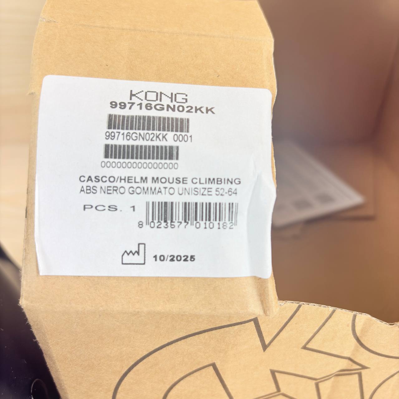 Casco de escalada Kong Mouse Sport (como nuevo, sin defectos). Diseñado para ofrecer seguridad y comodidad, cumple con la norma CE EN 12492, con un peso de solo 375g. Talla única, regulable de 52 a 64 cm, acabado en negro Soft Touch.