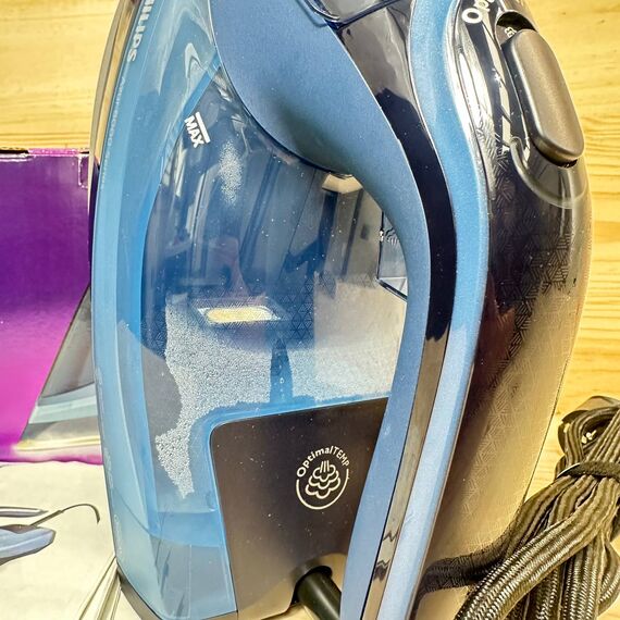 Plancha de Vapor Philips Azur Serie 8000 (como nueva, sin defectos). Cuenta con una potente emisión de vapor continuo de 55 g/min y un impulso de vapor de 240 g, todo ello con una potencia de 3000 W. Su tecnología OptimalTEMP garantiza un planchado sin quemaduras y su suela SteamGlide Elite permite un deslizamiento suave sobre cualquier tejido.