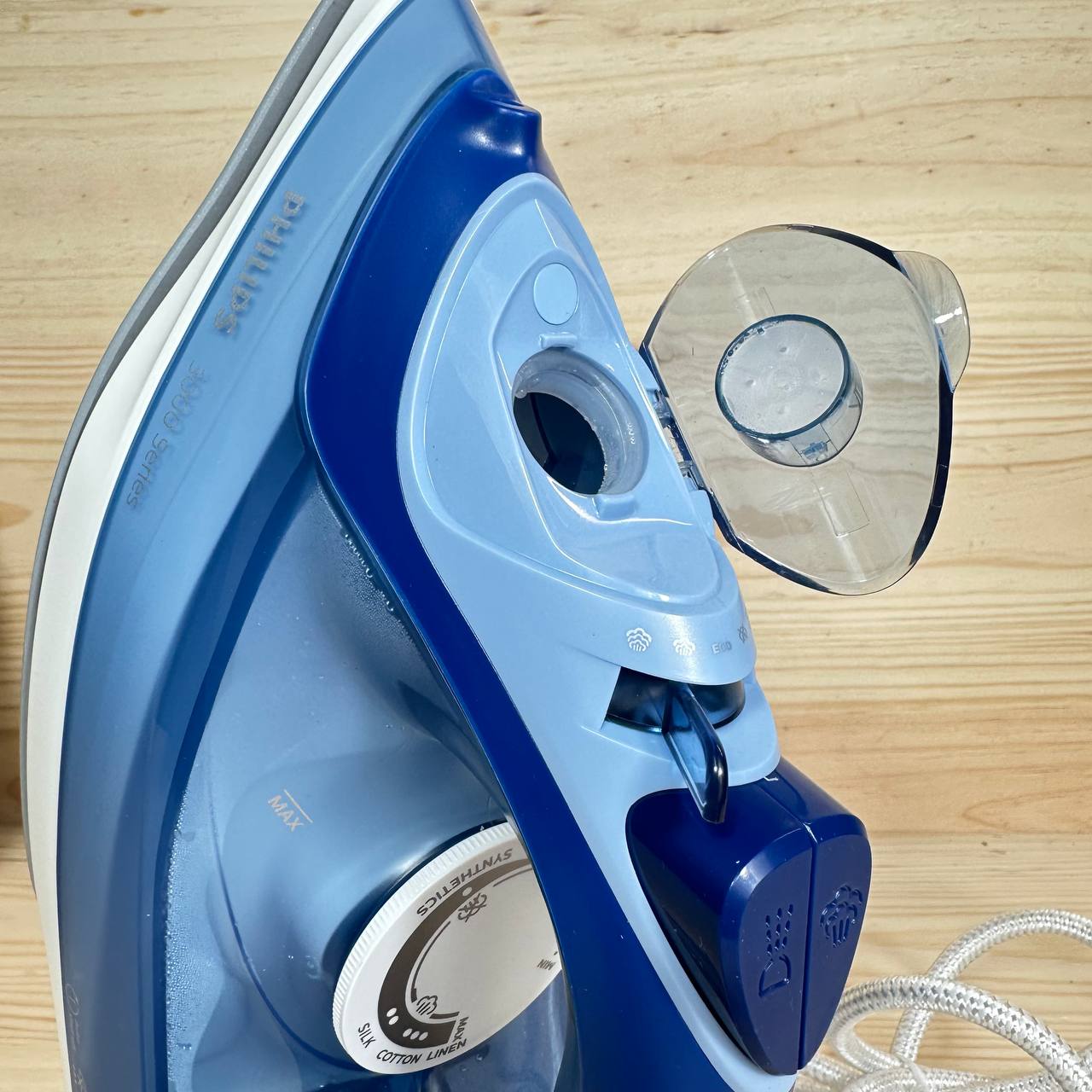 Plancha de vapor Philips 3000 Series DST3031/20, 2400 W, sin defectos. Potencia de vapor constante de 40 g/min y golpe de vapor de 180 g. Suela de cerámica que asegura un deslizamiento suave y eficiente, además de permitir vapor vertical.