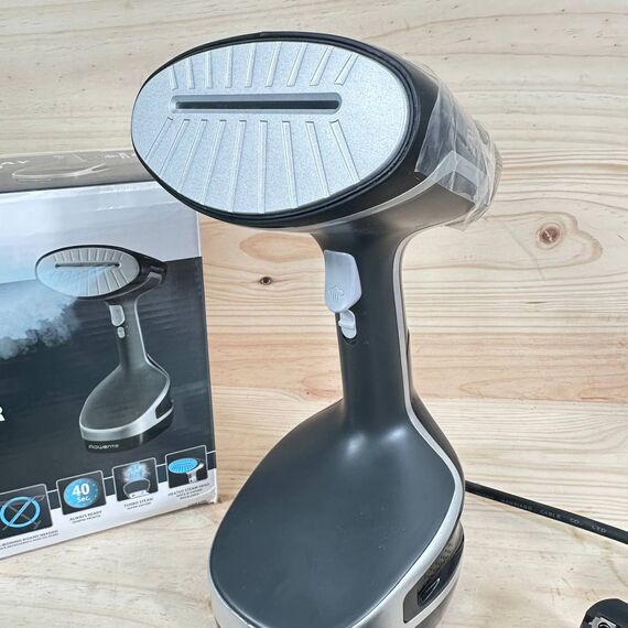 Rowenta Access Steam+ DR8150 - Cepillo de vapor vertical de 1600 W (como nuevo, sin defectos). Cuenta con un depósito de 190 ml y es ideal para eliminar arrugas y olores, además de desinfectar las prendas. Su diseño en gris y negro aporta elegancia y modernidad.