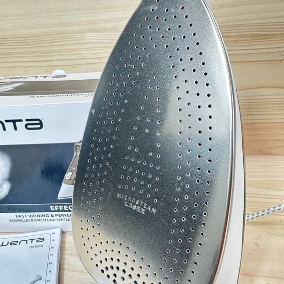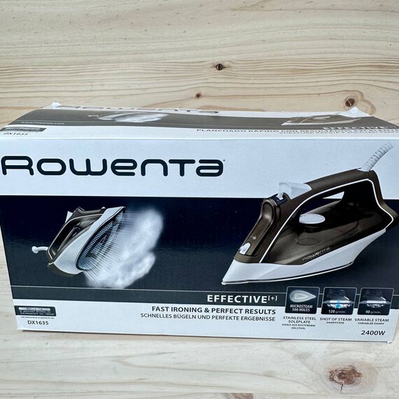 Plancha de vapor Rowenta Effective + DX1635 de 2400 W (nuevo, sin defectos). Ofrece un golpe de vapor de 120 g/min y cuenta con una suela Microsteam 300 de acero inoxidable para un deslizamiento óptimo.