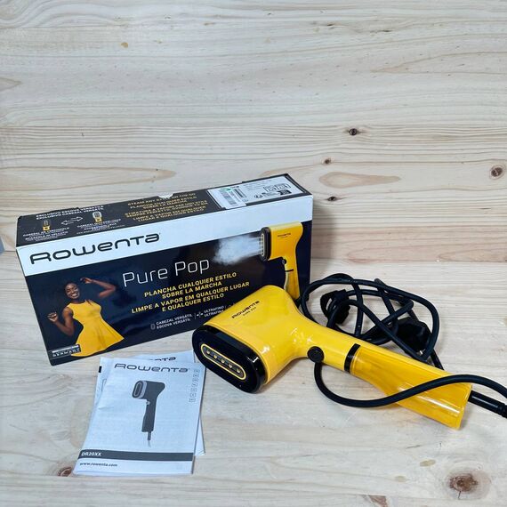 Rowenta Pure Pop DR2026, cepillo de vapor de 1300 W en estado como nuevo y sin defectos. Con una potente salida de vapor de hasta 20 gr/min, este cepillo no solo plancha sino que también purifica, eliminando pelusas y pelos de manera efectiva. Su diseño compacto y cabezales reversibles lo hacen ideal para llevar de viaje.