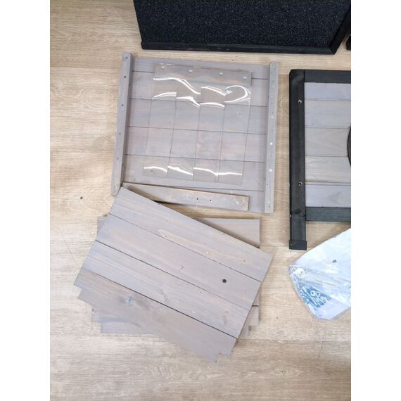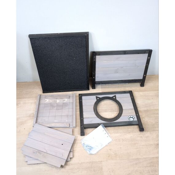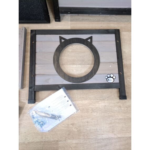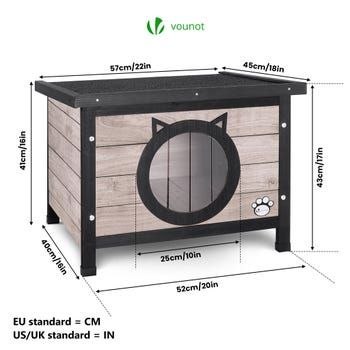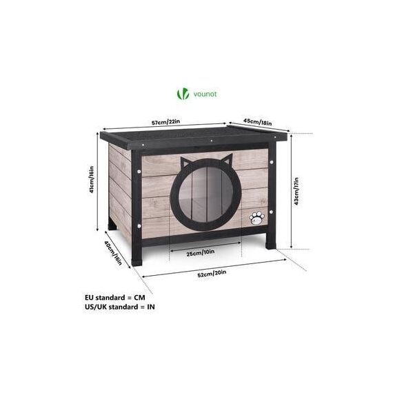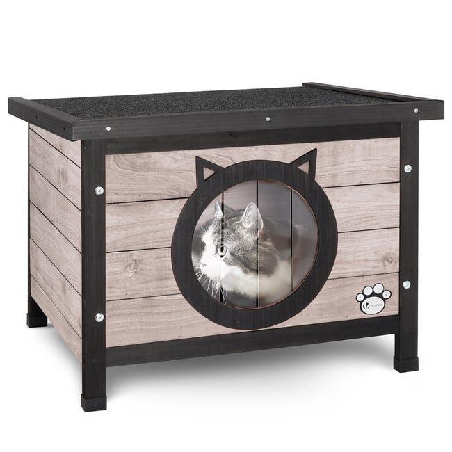 Casa para Gatos VOUNOT® de Madera con Puerta en Forma de Oreja y Techo Asfáltico, color gris (nuevo, sin defectos). Diseñada para ofrecer un refugio acogedor y seguro para tus mascotas.