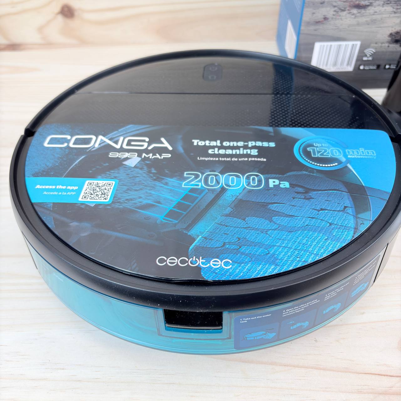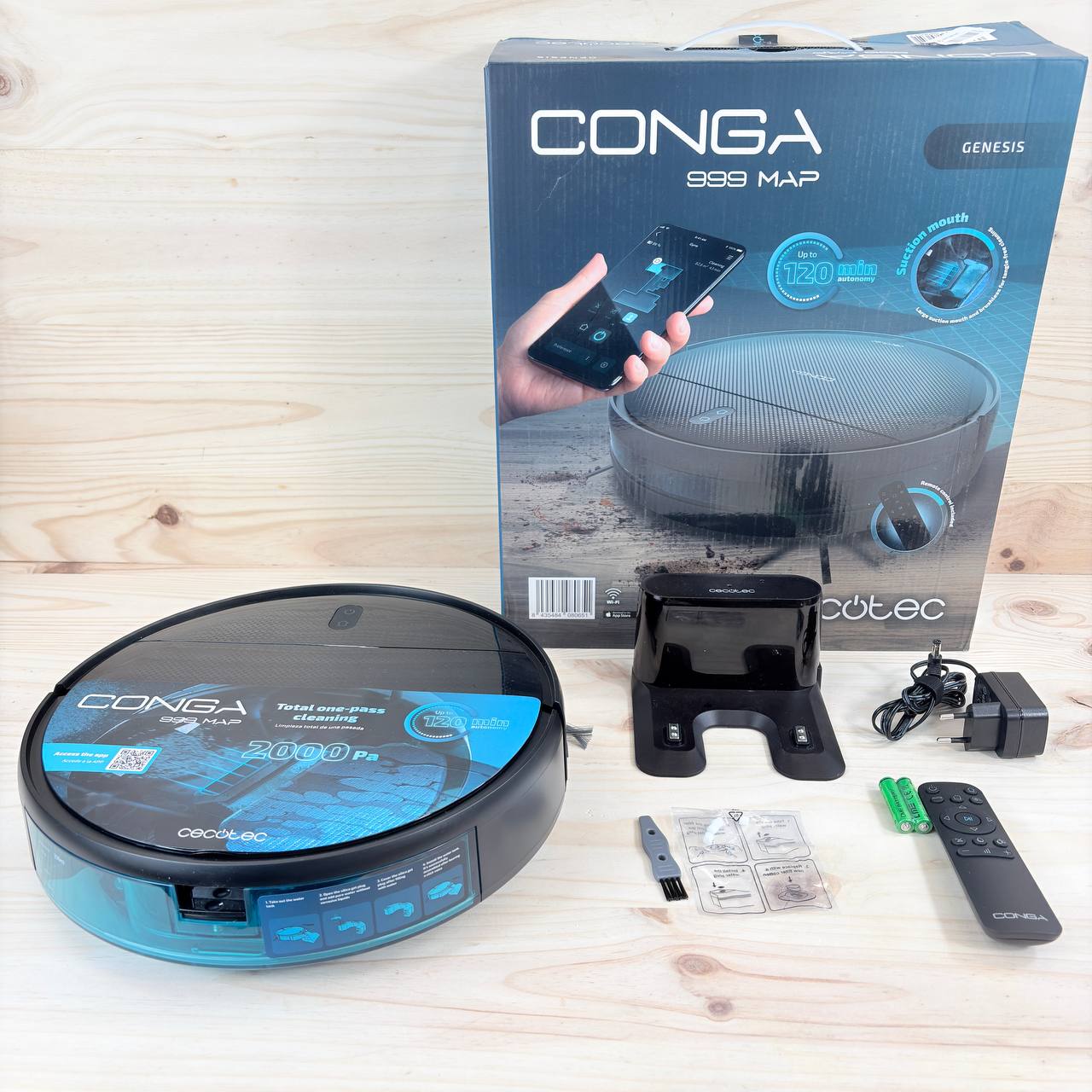 Cecotec Robot Aspirador con Navegación Giroscópica Conga 999 Map Genesis (nuevo, ligeras marcas de prueba). Potente motor de succión de 2000Pa, equipado con 2 cepillos laterales y mopa de fregado, y una autonomía de 120 minutos.