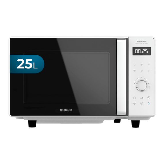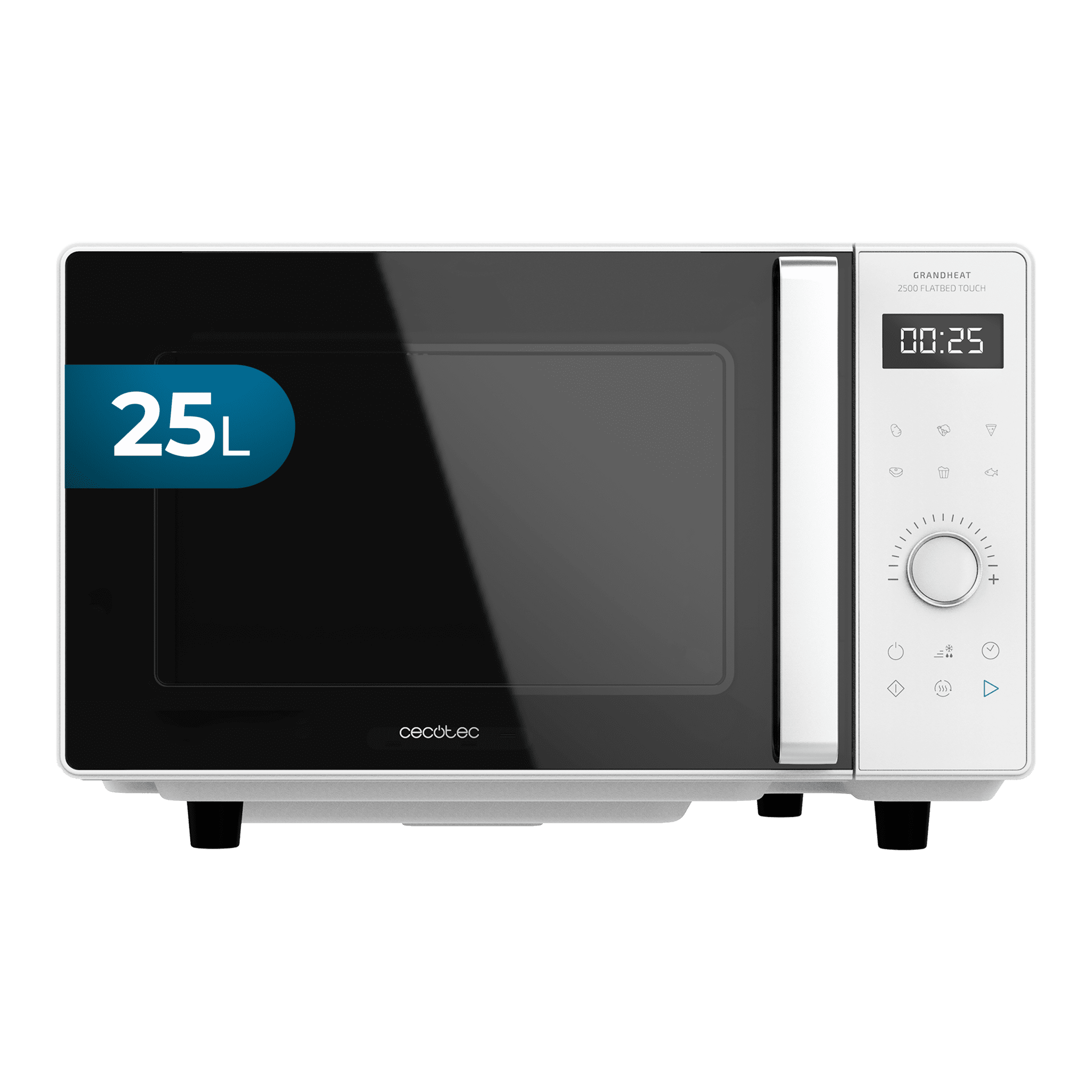 Cecotec Microondas sin Plato Digital GrandHeat 2500 Flatbed Touch White. 800 W, Capacidad 25 L, Panel de Control Táctil, 8 Funciones Preconfiguradas, Temporizador, Bloqueo de Seguridad
