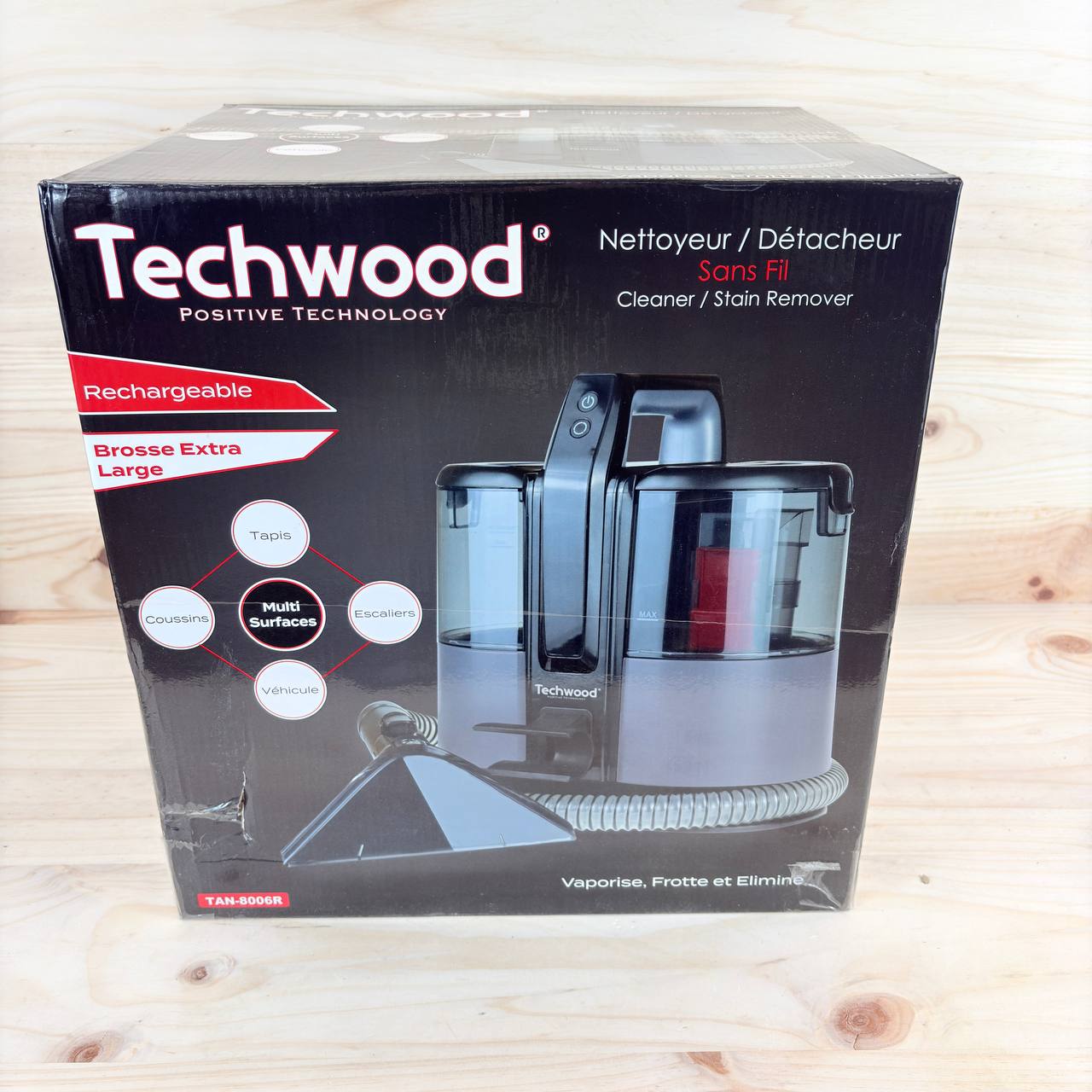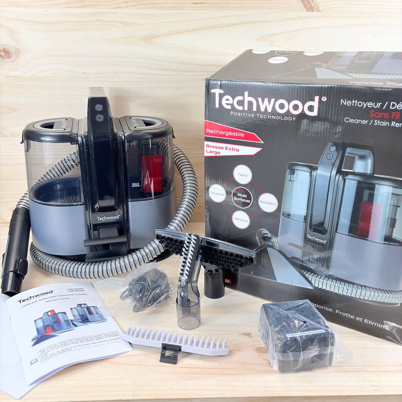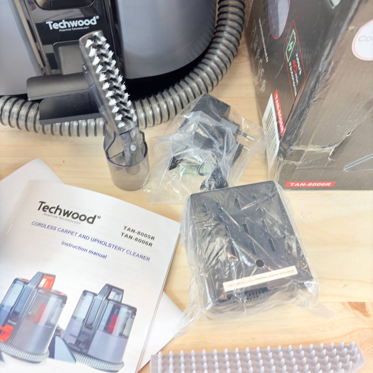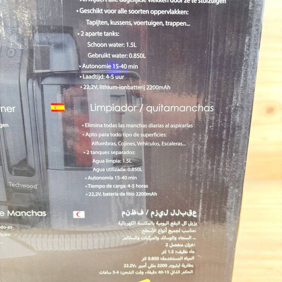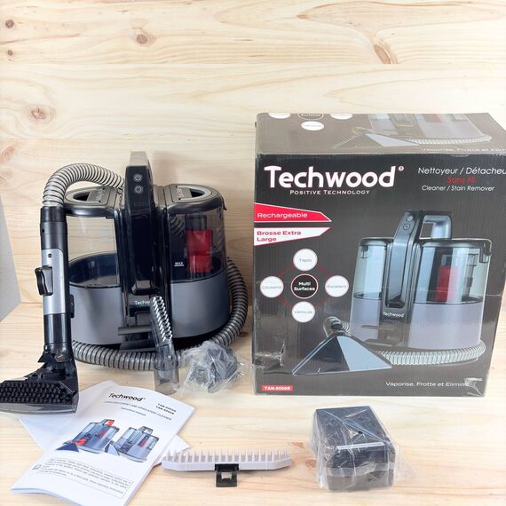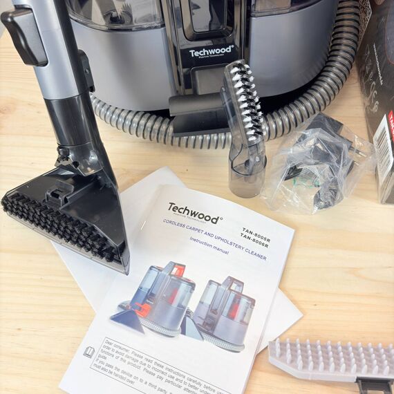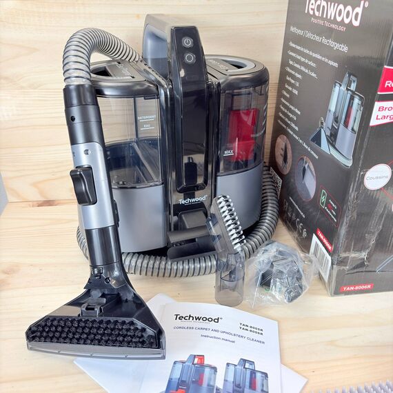 Limpiador de alfombras y tapicería TECHWOOD TAN-8006R con batería (nuevo, sin defectos).